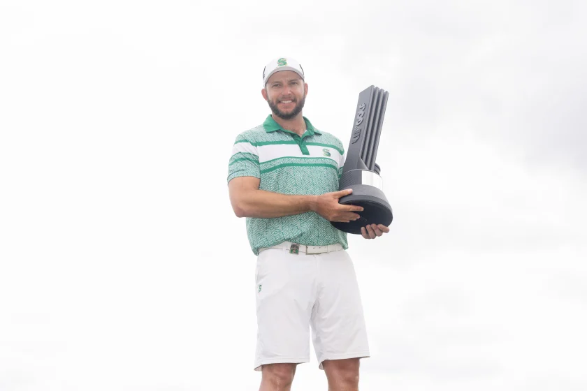 As for the emotions that came with his victory, Burmester explained, “I’ve been going through a bit of a rough time, personal stuff, and I’ve just been grinding and trying to get better … After three bogeys in a row to start, I was like, fudge, I don’t know where I’m going. The head was nowhere. But I just kept at it, and Jason, my caddie, was just phenomenal. He was just like, we never give up. We’re not going to give up. We’ve been through too much crap to give up.”