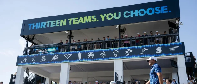 Bring your friends and join an electric atmosphere in this packed grandstand on the 15th green.
